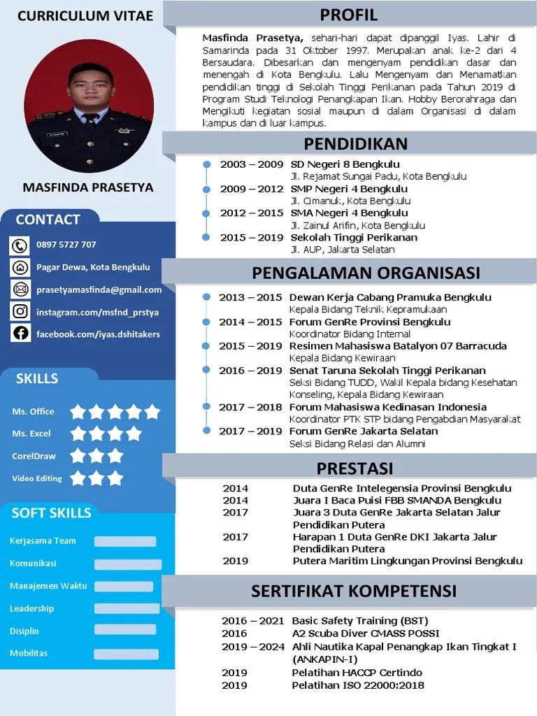 Semakin besar skalanya akan lebih baik, misalnya organisasi mahasiswa skala internasional/nasional. Pengalaman organisasi atau magang · 5. Lihat contoh daftar riwayat hidup mahasiswa di internet dan mulailah. Kelengkapan data diri · 2. Itulah sebabnya anda perlu contoh cv magang mahasiswa yang benar dan menarik.