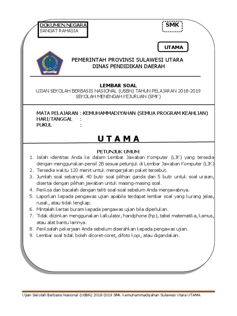 Mapel kemuhammadiyahan diujikan senin 20 september 2021.